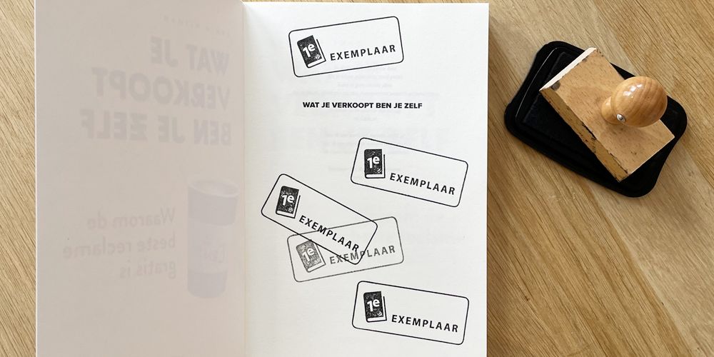 Zodra wij de eerste gedrukte exemplaren van een nieuwe titel ontvangen op de uitgeverij pakken wij het eerste exemplaar uit de eerste doos en zetten plechtig een stempel op de eerste pagina: 1e exemplaar. Dat boek sturen we vervolgens naar de auteur. Meestal staat er al vlug een foto op sociale media waarop de auteur, zichtbaar geroerd, zijn boek aan de wereld toont. Het boek is echt en de emoties zijn echt. Maar die stempel is natuurlijk hartstikke nep, want het is helemaal niet het eerste exemplaar.
