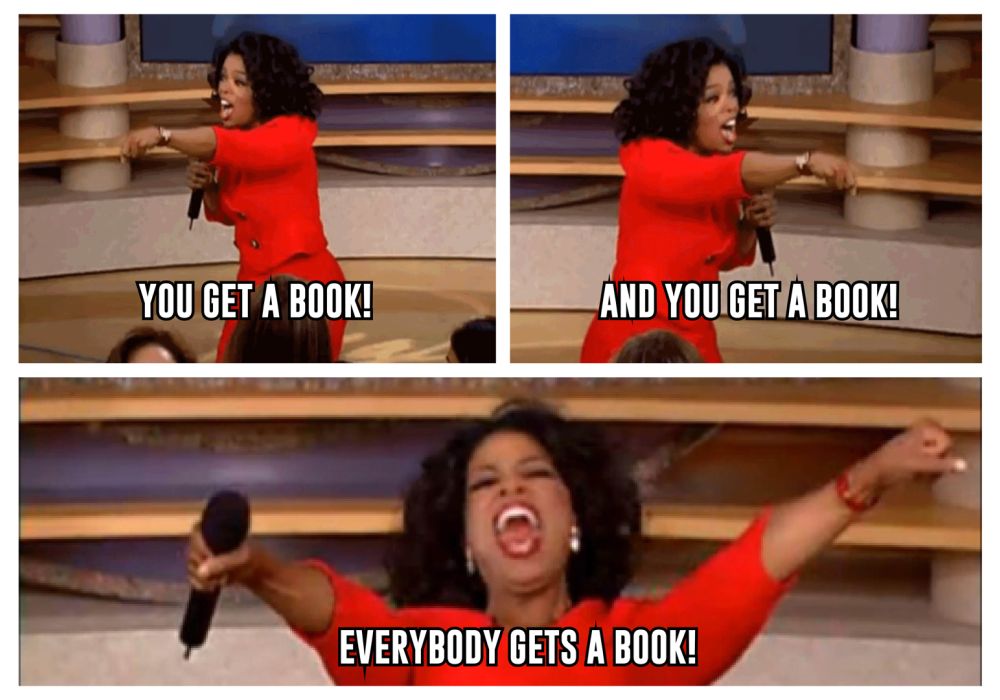 Jij krijgt een boek, en jij krijgt een boek en jij krijgt een boek!