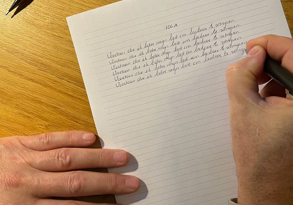 Volgens mijn collega’s heb ik een onleesbaar handschrift. Ik kan ze geen ongelijk geven. Vergeleken met hun elegante handschrift is dat van mij een post-apocalyptisch landschap vol dorre bomen. Ik p…